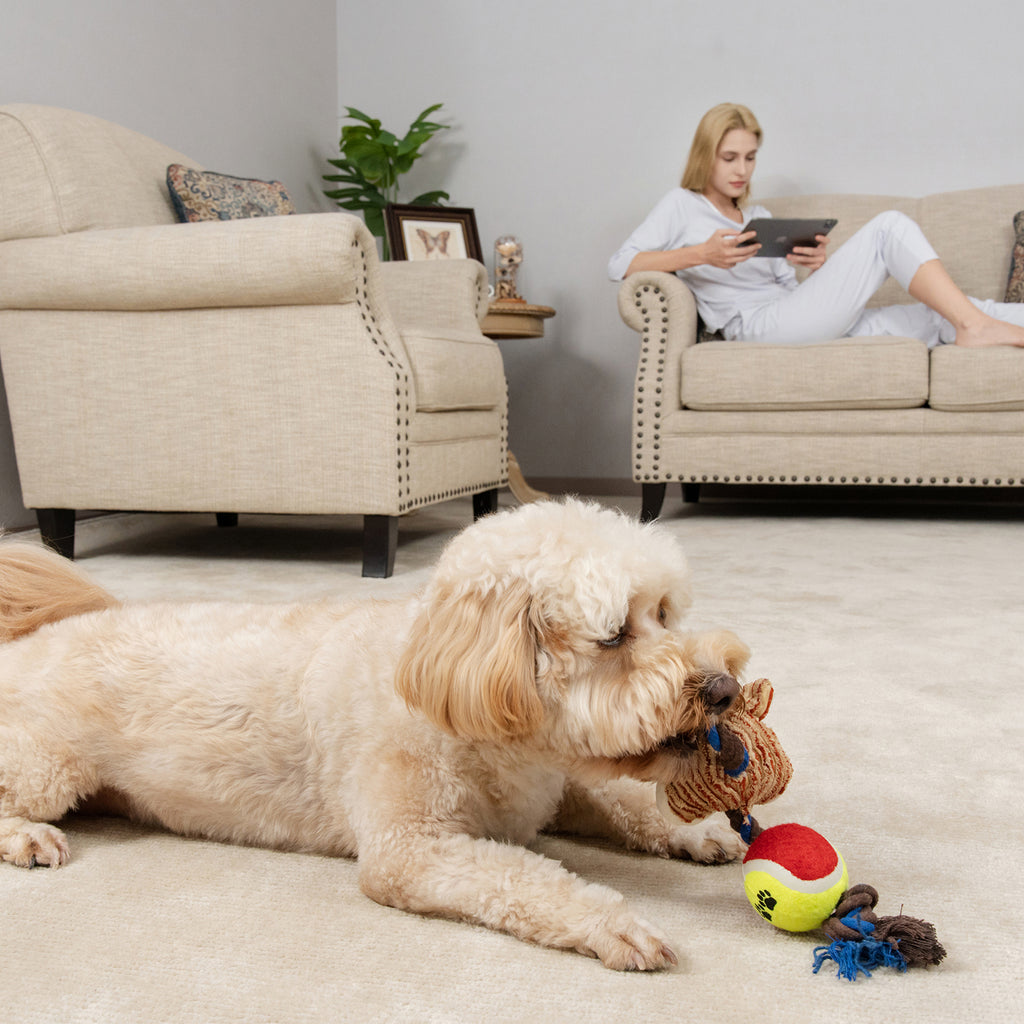 The thick ropes on the top and end are very tolerant of being bitten and help the puppy's teeth growing.